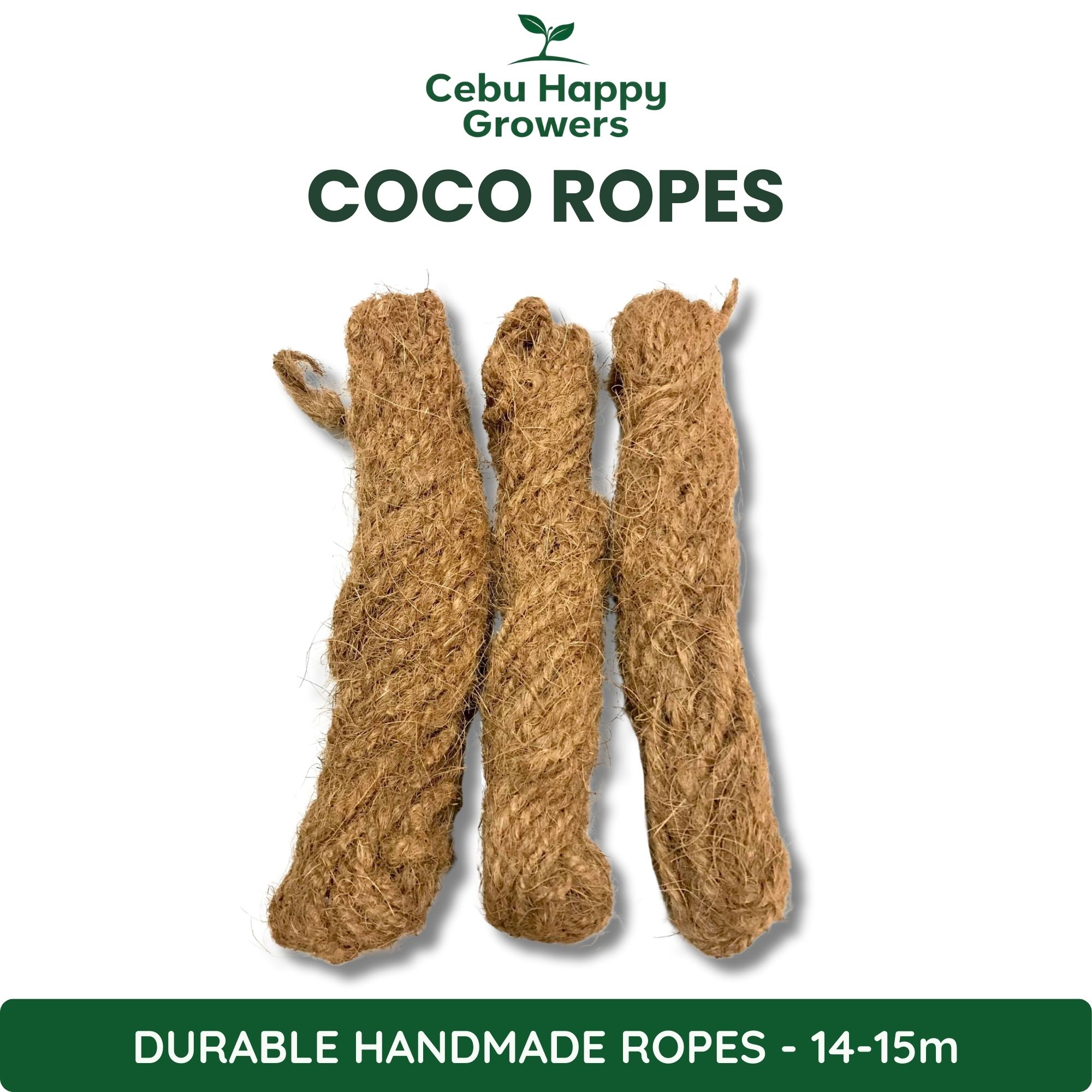 Handmade coco ropes (14–15m) made from 100% natural coconut coir fiber. Strong, eco-friendly twine ideal for hanging pots, coco poles, plant support, and DIY garden projects.